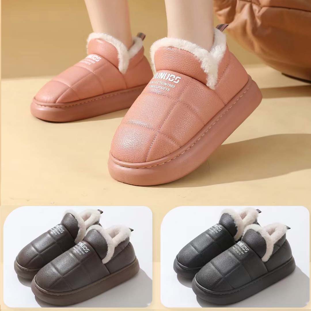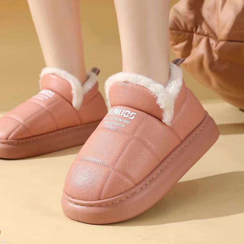 Women's Warm Shoes Winter Slippers PU Upper With Plush Inner