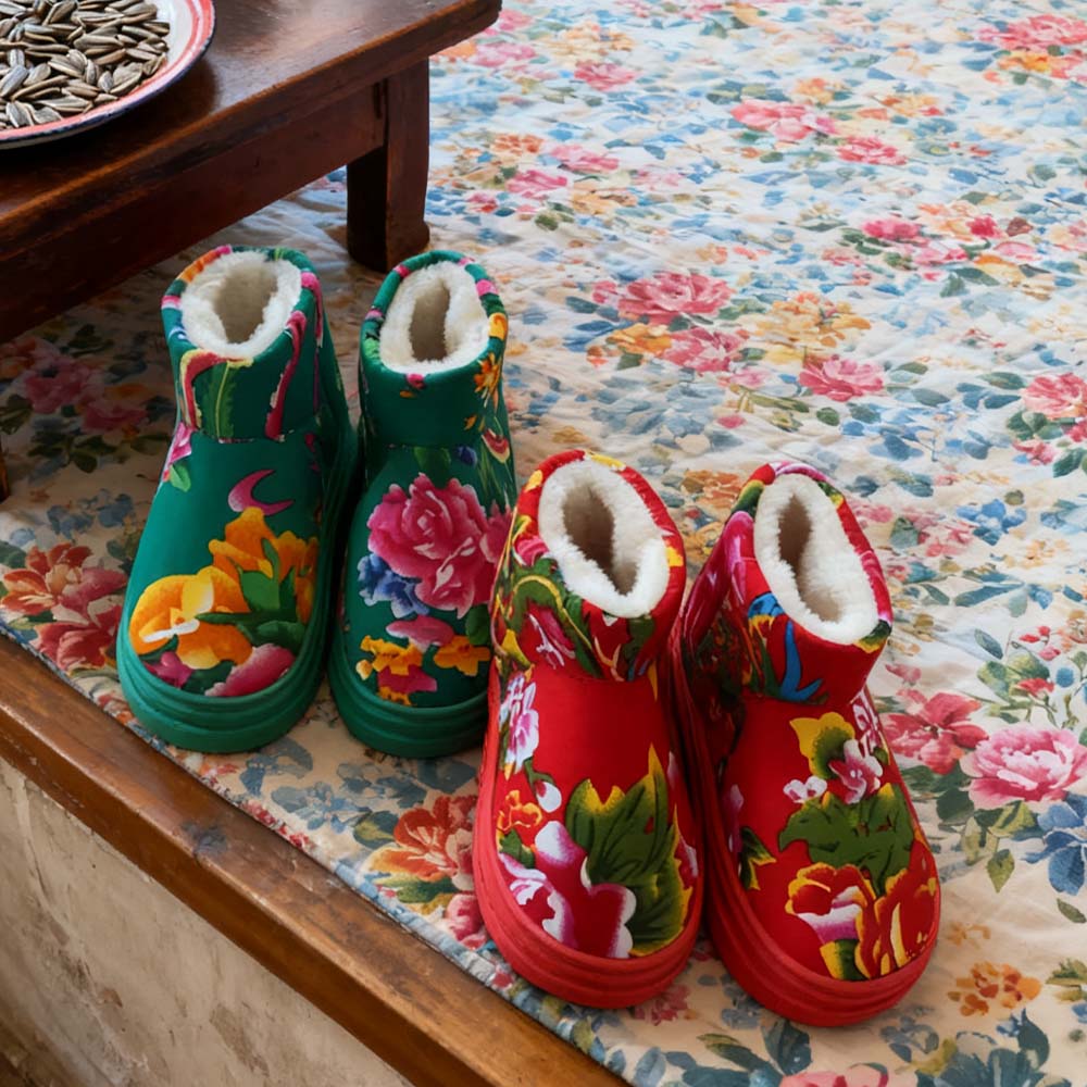 Name:Chinese Flower Printing Winter Warm Short Snow Boots With Plush Inner