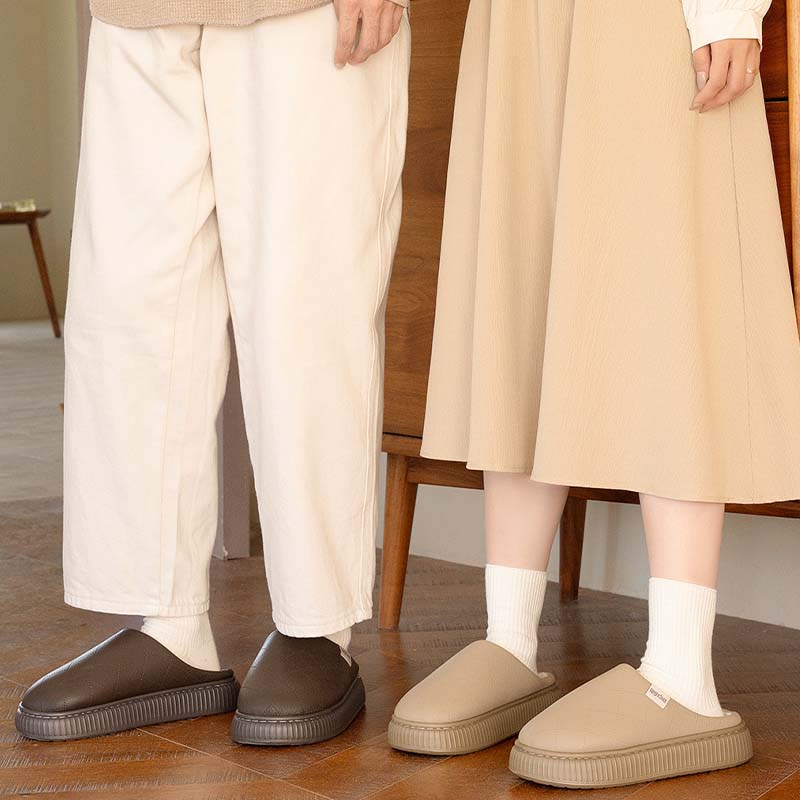 Name:Solid Color PU Winter Warm Casual Cozy House Slippers With Plush Inner