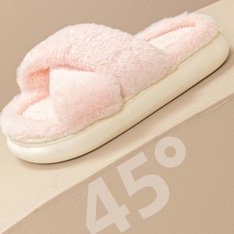 Name:New Women Home Indoor Slippers With Soft Plush Cross Upper In Pure Color