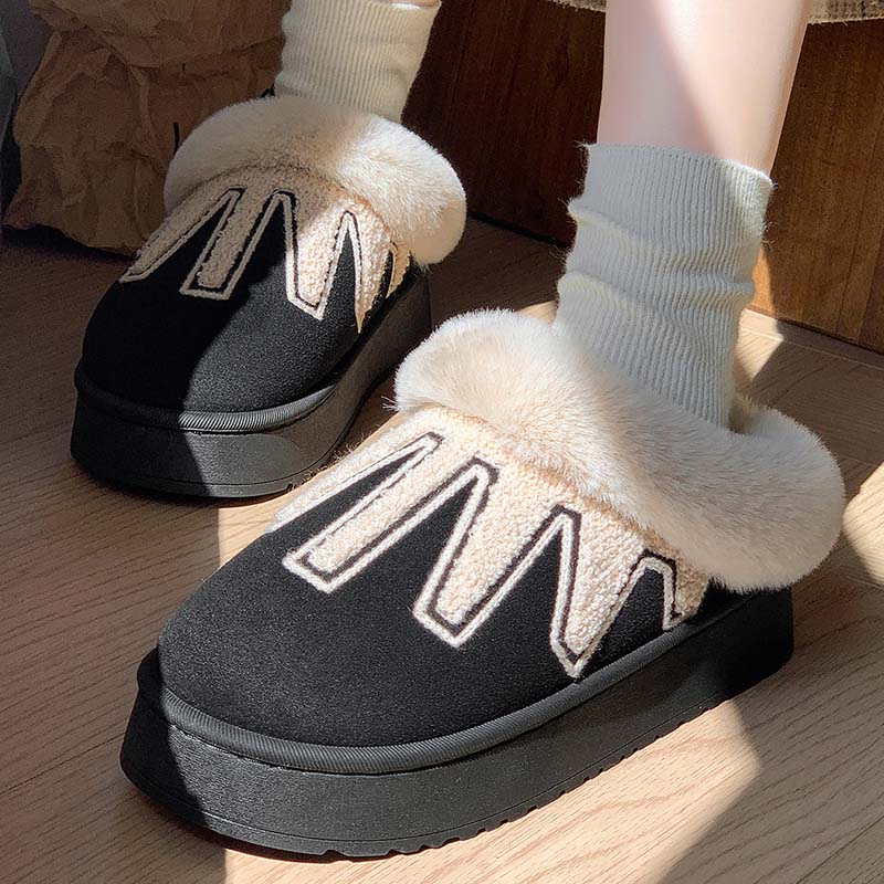 Name:Suede Winer Warm Slipper With Plush Collar And Sunshine Decor