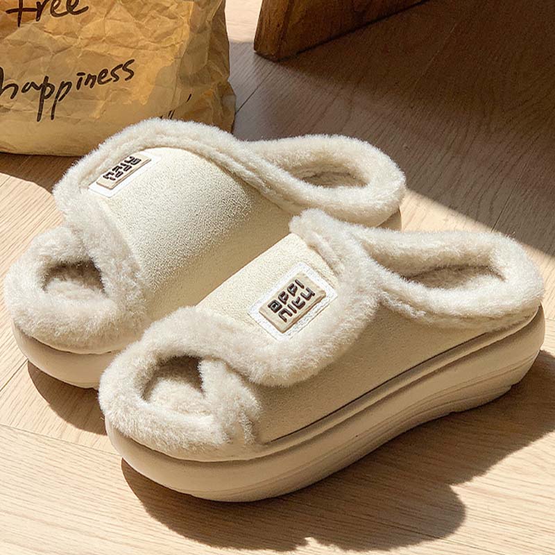 Name:Open Toe Plush Home Slippers With Adjustable Suede Upper