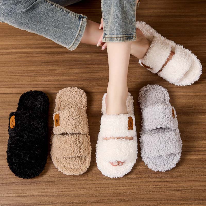 Name:Solid Color Plush Women's Slippers With Sandal Style