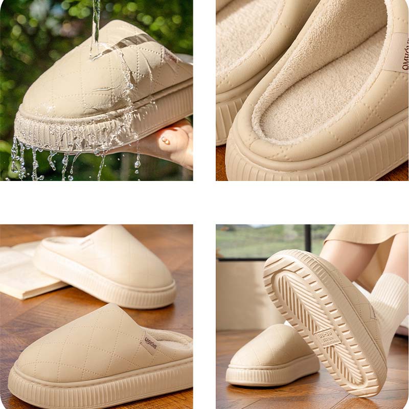 Name:Men Solid Color PU Winter Warm Cozy House Slippers With Plush Inner